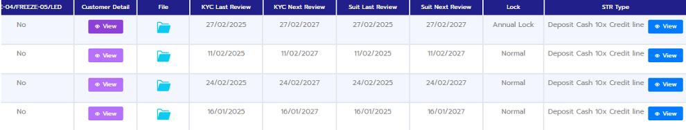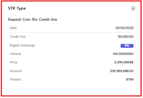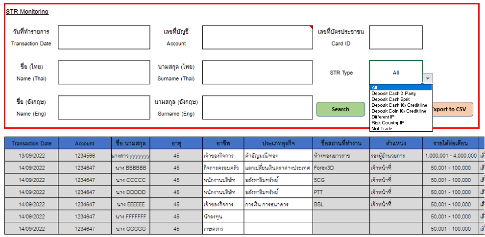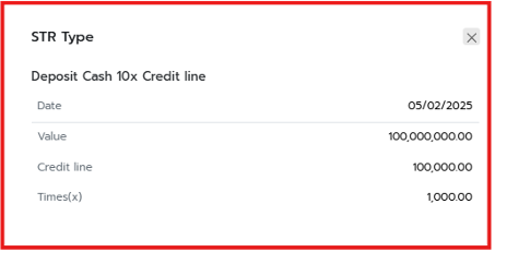 ดูรายละเอียดธุรกรรมของลูกค้าที่ทำให้เข้าเงื่อนไขต้องรายงาน STR ได้โดยการคลิ๊ก ซึ่งระบบจะแสดงหน้าจอตามประเภทของธุรกรรม ดังนี้