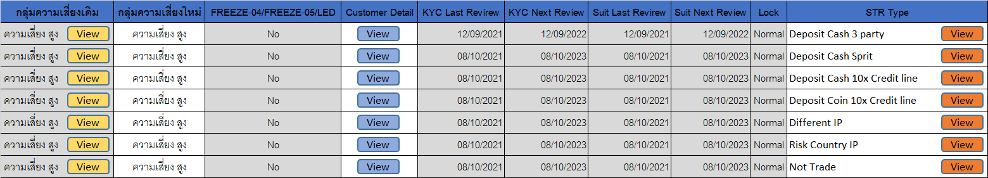 ตารางส่วนที่ 2 แสดงกลุ่มเสี่ยง วันที่ในการทำ Review ข้อมูลต่างๆของลูกค้า และ ประเภทธุรกรรมที่มีเหตุอันควรสงสัย (STR Type)