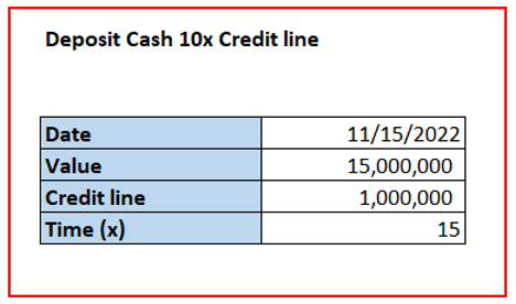 - Deposit Cash 10x Credit line คือ ฝากเงินมูลค่าเงิน 10 เท่าของวงเงิน