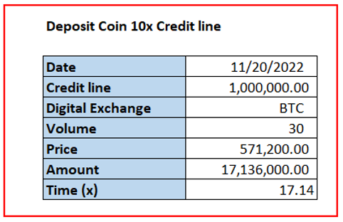 - Deposit Coin 10x Credit line คือ ฝากเหรียญมูลค่า 10 เท่าของวงเงิน