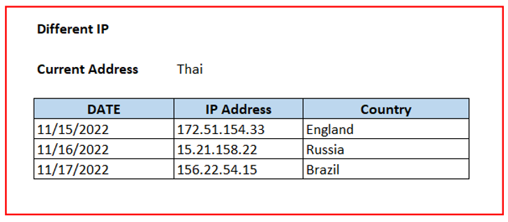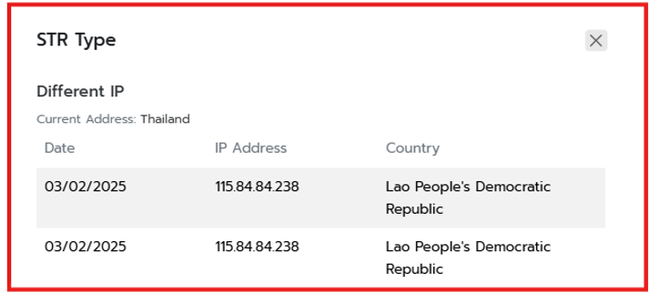 - Different IP คือ ถอนเหรียญจาก IP ประเทศ ไม่สอดคล้องกับที่อยู่ปัจจุบันของลูกค้า > 3 ครั้งใน 30 วัน